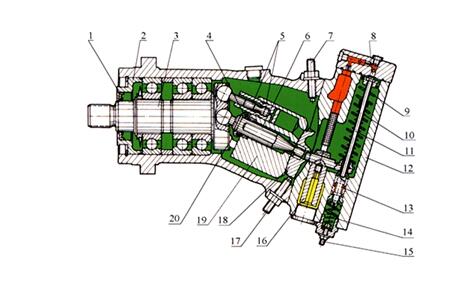 改變電磁閥中的電流可以改變傾斜元件的角度,進而改變柱塞在泵缸中的行程長度,即改變泵的流量。固定傾角的泵叫定排量泵,變量泵叫變量泵。