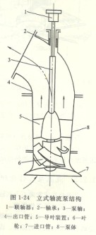 軸流泵的種類依據泵軸安裝部位可分成立柱式(圖1—24)、側式和立式三種。他們中間僅泵殼方式不一樣,內部構造基本一致。
