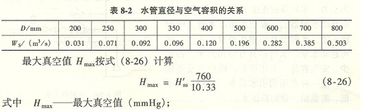 Ws表明從進蓄水池zui低水位線起算的進水口的總容積(m3),依據吸水管直徑和長短測算,一般可查詢表8-2求取;