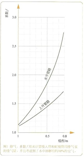上邊自吸泵的排氣時間計算方法括弧中的項.可以用指數,來表明。指數,和吸程(Hs.geo)相關。請參照自吸泵排氣的圖1