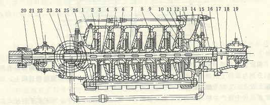 圖3-3 -般按段式多級離心泵結(jié)構(gòu)圖