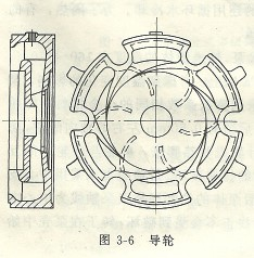 按段式多級離心泵原理:按段式多級離心泵中區(qū)每一個葉輪的外邊均安裝有一個導(dǎo)輪,導(dǎo)輪是一個固定不變的園盤,它的功效是把從葉輪甩出來的液態(tài)的一部分機(jī)械能根據(jù)降速而轉(zhuǎn)換為負(fù)壓能,而且把這種液態(tài)搜集后沿軸向流回而導(dǎo)人來下一級葉輪人口數(shù)量處。尋輪的正臉有圍繞在葉輪邊緣的正指導(dǎo)葉.反面有將液態(tài)引到下一級葉輪人口數(shù)量的反指導(dǎo)葉,其構(gòu)造如圖所示3-6所顯示。