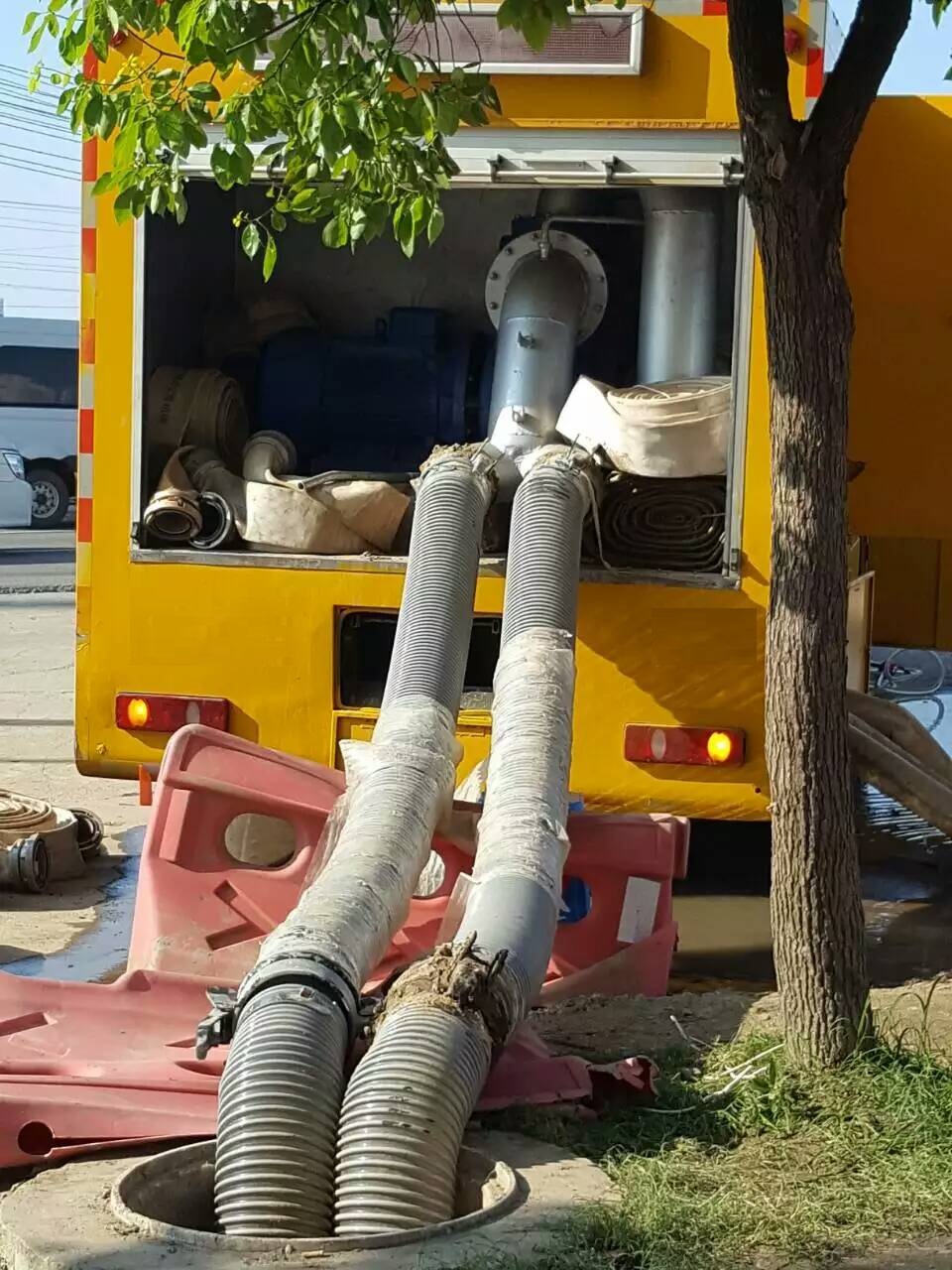 防汛自吸泵搶險現場5、防汛搶險自吸泵抽陰井存水當場